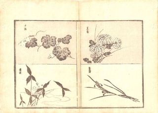 Hokusai Diverses sortes de fleurs Estampe originale de 1850 HA74 Page Hokusai |