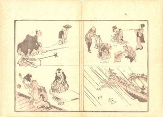 Hokusai (1760 - 1849) Jour de vent Estampe originale de 1850 Editeur : Yoshikawa Hanshichi Extrait de "Ringa e-hon" 80 € Format double Hanshibon : 31,5 cm x 22,8 cm (HA9I) Cliquer sur l'image pour voir la fiche |
