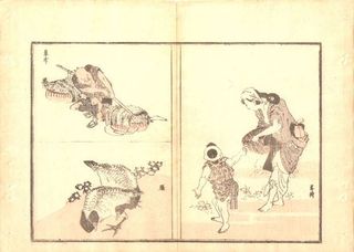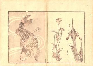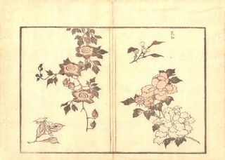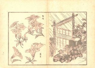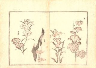 Hokusai Diverses sortes de fleurs Estampe originale de 1850 HA74 Page Hokusai |