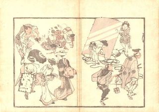 Hokusai Le sculpteur de kitsune (esprit du renard) et images de fêtes Estampe originale de 1850 HA72 Page Hokusai |