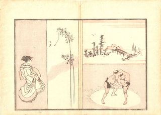de sumo et Estampe originale de 1850 HA80 Page Hokusai |