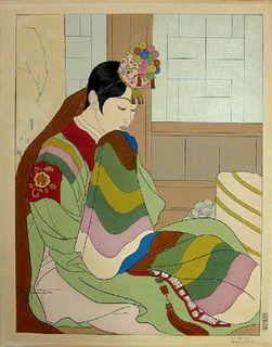 Paul JACOULET (1902-1960) Mariée, Seoul, Corée Estampe originale de Février 1948 Signature de la main de Paul Jacoulet (SH152) |
