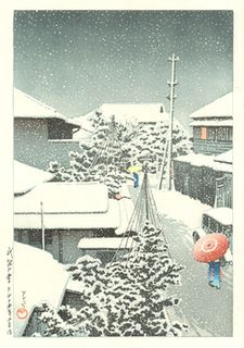 Hasui KAWASE (1883 - 1957) Neige à Ueno Kiyomizudô, 1929 Editeur Shobisha Edition posthume Format oban : 41,8 cm x 27,5 cm (HK109) Vendue juillet 2019 Cliquer sur l'image pour documenter et agrandir (un agrandissement en haute résolution de cette estampe est accessible |