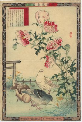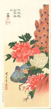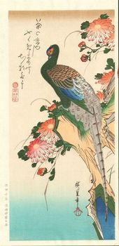 HIROSHIGE (1797-1858) paon et pivoines Editeur Yuyudo Réédition vers 1960-70 Vendue décembre 2015 Format mitsugiri-ban : 40,6 cm x 19,5 cm (Réf. : HG110) Cliquer sur l'image pour documenter et agrandir |