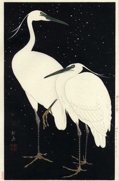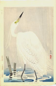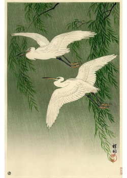 Hérons blancs et saule sous la pluie 1926 Editeur Watanabe Estampe originale impression posthume avec les bois gravés d'origine Epuisée - Sold out Format oban : 39 cm x 26 cm (OK03) Cliquer sur l'image pour détailler et agrandir |
