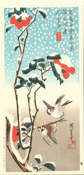 Moineaux et camelia sous la neige Editeur Yuyudo Réédition vers 1960-70 Vendue août 2015 Format mitsugiri-ban : 40,6 cm x 19,7 cm (Réf. : HG103) Cliquer sur l'image pour documenter et agrandir |
