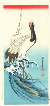 (1797-1858) Grue dans les vagues posée sur un rocher Editeur Yuyudo Réédition vers 1960-70 Vendue juin 2016 Format mitsugiri-ban : 40,7 x 19,3 cm (Réf. : HG106) Cliquer sur l'image pour documenter et agrandir |