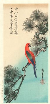 Ara sur une branche de pin Editeur Yuyudo Réédition vers 1960-70 Vendue juillet 2015 Format mitsugiri-ban : 40,6 x 19,7 cm (Réf. : HG113) Cliquer sur l'image pour documenter et agrandir |