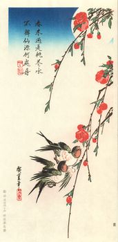 Hirondelles et fleurs de pêcher Editeur Yuyudo Réédition vers 1960-70 Vendue août 2015 Format mitsugiri-ban : 40,7 cm x 20 cm (Réf. : HG114) Cliquer sur l'image pour documenter et agrandir |