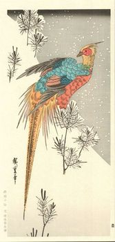 Faisan et jeunes pousses de pin sous la neige Editeur Yuyudo Réédition vers 1960-70 Vendue octobre 2015 Format mitsugiri-ban : 40,7 cm x 19,7 cm (Réf. : HG97) Cliquer sur l'image pour documenter et agrandir |