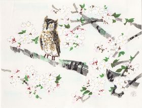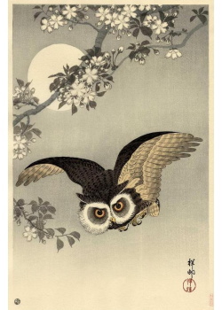 Koson OHARA Cerisier et chouette au clair de lune Format oban : 38,5 cm x 26,5 cm (OK12) Epuisée - Sold out |
