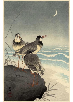 Pluviers au bord de la mer et croissant de lune 1926 (En photo page 22 de Art et Métiers du Livre, Numéro de mai-juin 2012) Format oban : 39 cm x 26 cm (OK05) Cliquer sur l'image pour agrandir |