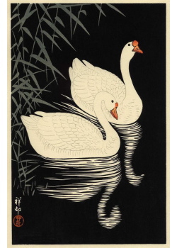 Koson OHARA Cygnes et roseaux fond noir 1928 (OK04) |