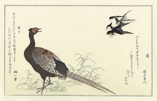 Utamaro (1752 - 1815) Série " un chur d'oiseaux " (momo chidori kyoka awase) Un faisan et deux hirondelles Réédition vers 1970 Editeur Adachi (sceau au dos) Vendue décembre 2014 Format oban : 40,2 cm x 25,8 cm (UT01) Cliquer sur l'image pour détailler et agrandir |