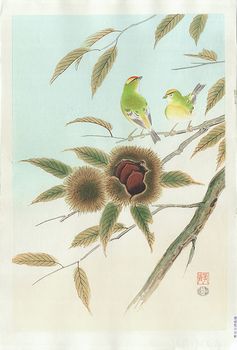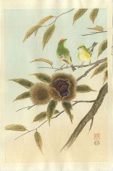 Roitelets et marrons Shizuo ASHIKAGA (actif dans les années 1950) Estampe originale, première édition Editeur Uchida Vendue juillet 2017 Format oban : 44 cm x 30 cm (Réf. : VL09) Cliquer sur l'image pour détailler et agrandir |