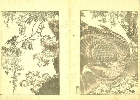 Hokusai (1760 - 1849) Rapace Estampe originale de 1849 Extrait de Gafu e-hon (Le livre de peinture) 2 panneaux séparés Vendue mars 2018 Dimensions : 22,6 cm x 31,4 cm (HA53) Cliquer sur l'image pour documenter et agrandir |