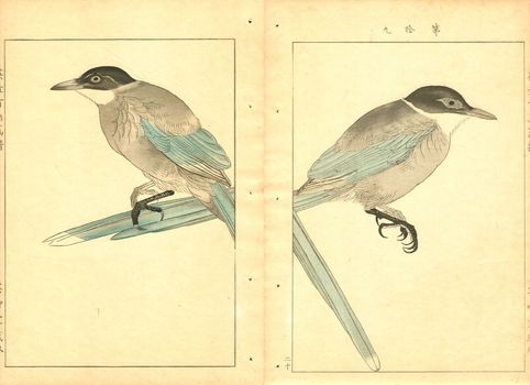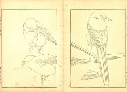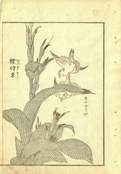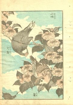 Hokusai (1760 - 1849) Oiseaux Estampe originale de 1849 Extrait de Gafu e-hon (Le livre de peinture) Vendue décembre 2017 Dimensions : 22,6 cm x 15,7 cm (VL11) Cliquer sur l'image pour documenter et agrandir |