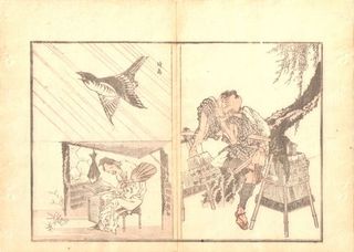 Hokusai (1760 - 1849) Rapace Estampe originale de 1849 Extrait de Gafu e-hon (Le livre d'images peintes) 2 panneaux séparés Vendue mars 2018 Dimensions : 22,6 cm x 31,4 cm (HA53) Cliquer sur l'image pour documenter et agrandir |