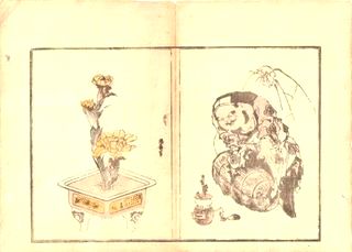 Hokusai (1760 - 1849) Bonsai et Daikokuten, un des 7 dieux du bonheur Estampe originale de 1850 Editeur : Yoshikawa Hanshichi Extrait de "Ringa e-hon" Vendue Janvier 2024 Format double Hanshibon : 31,5 cm x 22,8 cm (HA75) Cliquer sur l'image pour voir la fiche |